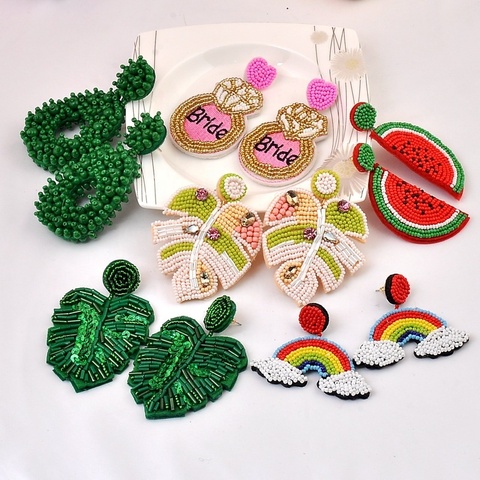Brincos de contas boho personalizados brincos pendurados de contas de sementes feitos à mão na moda