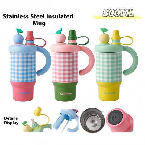 Atacado 800ml Xadrez Tumbler Copo De Café Térmico Portátil com Palha Sip 316 Garrafa De Água De Aço Inoxidável para Carro Escritório Viagem